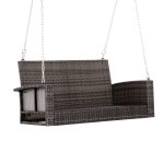 This Grey Tones Wicker Porch Swing 7ft Hanging Chain with Dark Grey Padded Cushion has so much Southern charm it practically welcomes your guests and brings out a pitcher of sweet tea for you. Its generous size with curved armrests, a high back rest with super padded charcoal cushion, makes this classic 2 person porch swing a great backyard or porch addition.