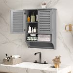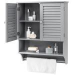 • Grey Wall-Mounted Bathroom Medicine Cabinet with Louver Doors and Towel Bar