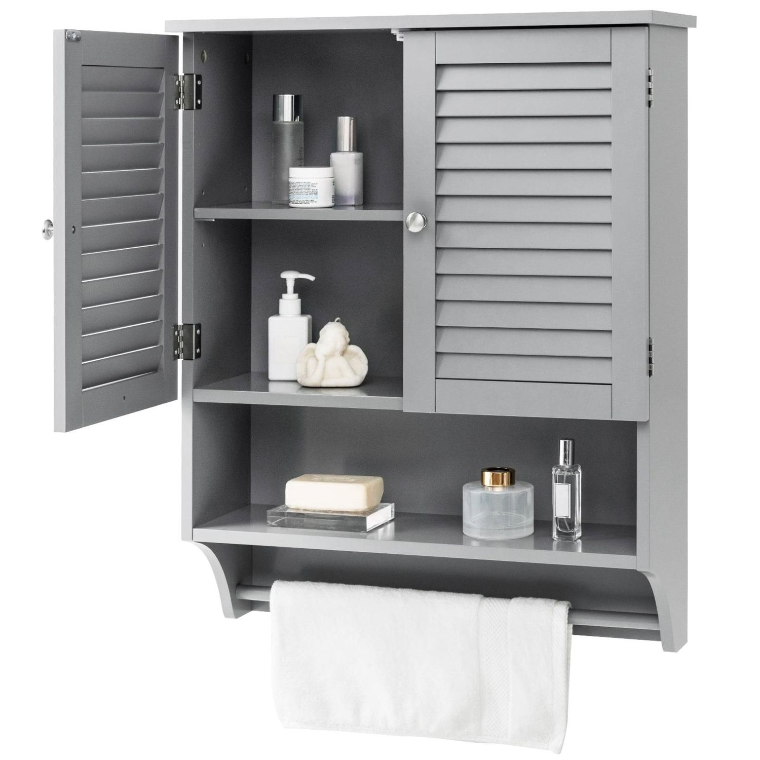Grey Wall-Mounted Bathroom Medicine Cabinet with Louver Doors and Towel Bar