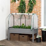 GROW THYME! This sturdy eye catching Grey Elevated Raised Garden Bed w/ Greenhouse Cover provides ample growing space with its solid supporting frame. Grow a wide variety of your favorite plants, vegetables, herbs and flowers! Keep your favorite plants protected with this planter box. The box includes a cover that can protect against water, UV rays, maintains high humidity levels for growing tropical plants and allows nourishing sunlight to pass through. This garden box is lined with a non-woven fabric material that provides airflow throughout the soil and prevents soil loss. There are 4 drainage holes at the bottom to prevent excess water from damaging the plants. Keep your garden stable and secure with this raised garden bed. Made with a solid wood and steel for strong support. 4 drainage holes allow excess water to drain out. Roll-up design of the cover provides air flow. Overall Dimension: 47.75″L x 21.75″W x 46″H; Weight Capacity: 88 lbs.