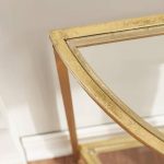 Half-Circle Entryway Console Table Gold Metal Glass Top Bottom Shelf Sofa Table