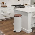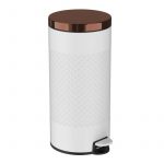 A retro look round shape 8 gallon/30-liter stainless steel trash can with hands-free operation and a quiet slow close lid. The strong foot pedal structure will provide many years of trouble-free use. A removable inner plastic bucket can be used with or without a trash bag. A large back handle makes for convenient moving and lifting. A non-skid base keeps the trash can steady and protects floors. Carbon steel with white color finish.
