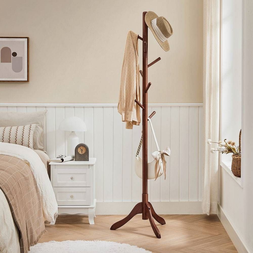 Heavy Duty Solid Wood Coat Rack in Dark Brown Finish with 53 lb Weight Capacity