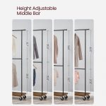 Industrial Style Clothing Garment Rack Double Clothes Hanging Bar on Wheels