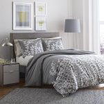 • King 3-Piece Cotton Comforter Set with Gray White Floral Branch Pattern