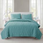 This King Coastal Beach Starfish Seashell Seahorse Aqua Blue Teal 3-Piece Quilt Set has everything you need to bring a cool, coastal vibe to your space all year long. Featuring a subtle embossed sea life pattern, the set includes coordinating shams for a complete staycation-worth look.
