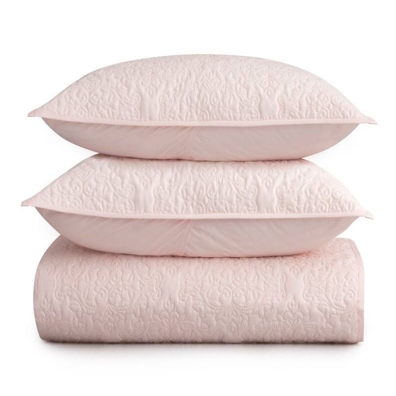 King Size 100-Percent Cotton 3-Piece Quilt Bedspread Set in Blush Pink