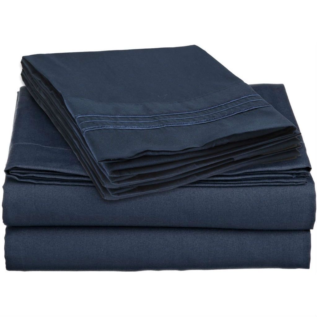 King size 4-Piece Wrinkle-Free Microfiber Sheet Set in Navy Blue Machine wash on cold Tumble dry on low Fade Resistant Wrinkle Free No Ironing Necessary Deep Pockets – with fully elasticized fitted sheet guarantees a secure fit for mattress depths from 16″ Brushed Microfiber – with cool lustrous feel and a very soft silky touch Easy Care -Wrinkle-free Machine wash in cold and tumble dry on low