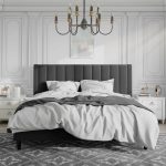 Upholstered in plush velvet, our King size Black Velvet Upholstered Platform Bed Frame with Headboard is the best choice for your classy life. This bed frame also can seriously upgrade your roomÂ’s aesthetic. A sturdy steel frame and durable wooden slats offer pretty stability and durability. There are feet on the headboard post and all feet must be attached to the frame. Do not use highly corrosive solutions when cleaning the product.