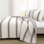 King Size Black White 3 Piece Stripe Reversible Cotton Quilt Set