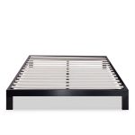 - King size Modern Black Metal Platform Bed Frame with Wood Slats