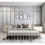 This King White Metal Platform Bed Frame with Rounded Corners Headboard Footboard brings a classic, minimalist feel to your bedroom. Crafted from metal, it features a slatted headboard with a tubular design and rounded corners for a traditional wrought iron look. Diamond-shaped finials cap off each slat for a geometric touch. We love that this bed has center legs that provide additional support. Best of all, it comes with an 11-piece slat kit and center supports, so a box spring is not necessary all you need to add is a fitting mattress of your choice (sold separately).