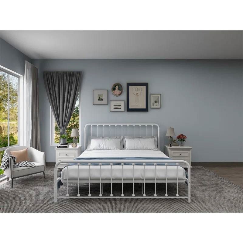 King White Metal Platform Bed Frame with Rounded Corners Headboard Footboard
