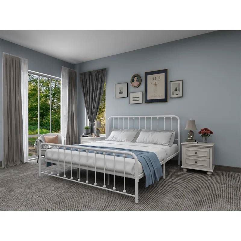 • King White Metal Platform Bed Frame with Rounded Corners Headboard Footboard