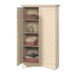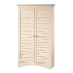 Constructed from top quality wood, MDF, and wood veneer, this stunning Armoire Wardrobe Storage Cabinet is sturdy and long lasting. It is a perfect blend of utility and style. Sporting a serene antique white finish, this beautiful storage cabinet enhances the overall appearance of your room. The blind like design of this cabinet further amplifies its appearance. This sleek and compact storage cabinet easily fits in to small nooks and corners. The two knobs in the front of this cabinet allow easy and simple handling. Thanks to the turned feet base, this storage cabinet remains firm and stable on the floor. The four adjustable shelves of this storage cabinet effortlessly accommodate a range of various sized items. You can keep extra blankets, bed sheets, pillows, towels, clothes, handbags, briefcases, and many more. The top can be used to display some decorative planter or vase.