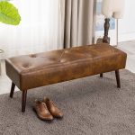The Mid-Century End of Bed Bench with Brown Leather Upholstered Seat Solid Wood Legs wrapped in high-quality leather offers ultimate comfort. This unique design is your perfect choice! Generously padded with high-density sponge, the bedroom bench seat is more soft and supportive than an ordinary sponge without collapse. Put your feet up on a leather bench and descend into pure relaxation and comfort. The elegant appearance of the tufted bench for the bedroom can be adapted for most decoration styles, such as the bedroom, living room, dining room, entryway, and also blends with a variety of decor. The dimension of this bed bench is 44.75″D x 15″W x 16.5″H. All necessary hardware and instructions are included in the package. Easy to assemble in minutes. you can put it together and then enjoy sitting. We have established a complete after-sales service system to provide our customers with fast, professional, accurate and enthusiastic technical support and service.