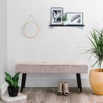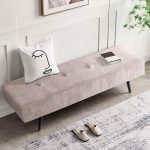 - Mid-Century Pink Corduroy Upholstered End of Bed Bench with Black Metal Legs