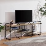 - Modern Gray Wood and Metal Entertainment Center TV Stand for TV up to 65-inch