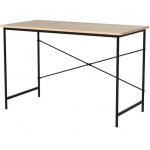- Modern Home Office Computer Desk Table with Black Metal Frame Wood Top in Oak