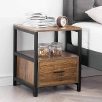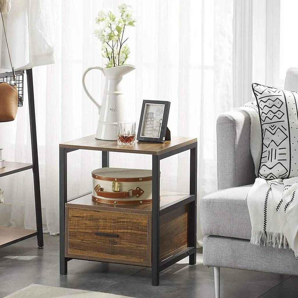- Modern Industrial Wood Metal Side End Table Nightstand with Storage Drawer
