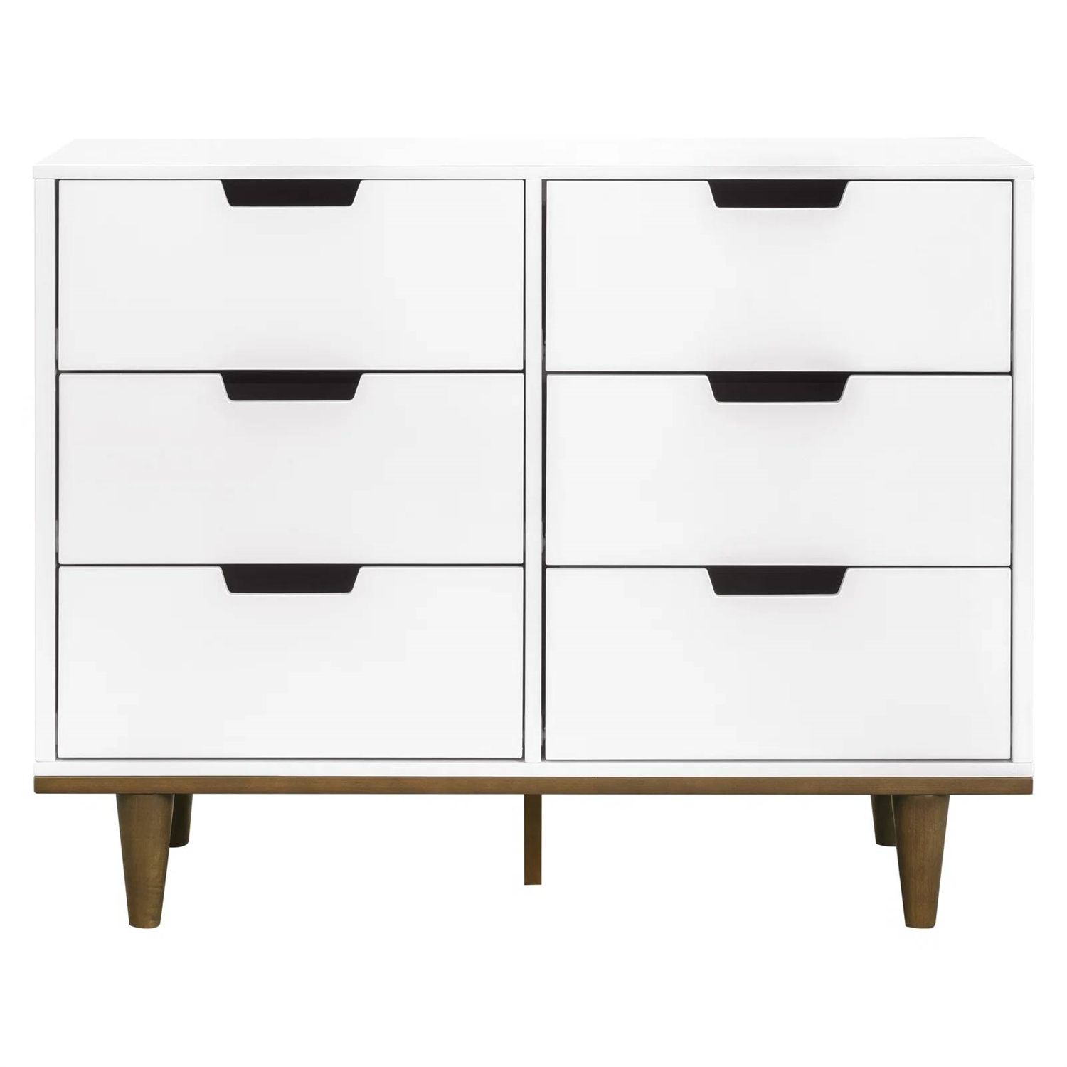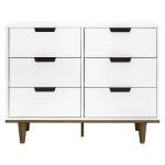 • Modern Mid-Century Style 6-Drawer Double Dresser in White Walnut Wood Finish