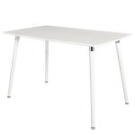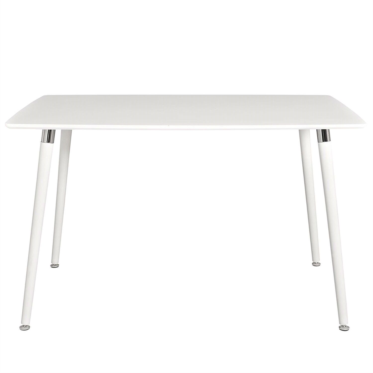 Modern Mid-Century Style Dining Table in White with Wood Legs Modern Dining Table Solid Beech Wood Legs Fiberboard Top