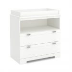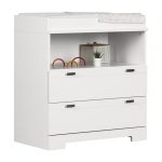 Give your nursery a modern look with the Modern Nursery 2 Drawer Storage Baby Changing Table in White. This baby station is made with ample storage space for diapers, wipes, clothes, and burp cloths. Features 2 drawers and a shelf. Its made with non-toxic, laminate particleboard construction is made to last while the pure white finish complements a wide variety of décors. Lovely in its simplicity, this set is sure to be a favorite for years to come.