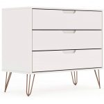 Bring that relaxed flair with this Modern Scandinavian Style Bedroom 3-Drawer Dresser in White Wood Finish. The dresser measures 35. 24″ L in. x 17. 52″ W in. x 28. 86″ H in. and weighs 65. 56 lbs. This dresser is crafted from durable MDF and metal. A perfect piece for your living space, the dresser has three spacious pullout drawers to store clothing and other essentials. Features a stylish Midcentury design with splayed hairpin metal legs. The spacious table top is a great place for a lamp, a vase, framed photos, and travel trinkets. Manhattan Comfort, a developing furniture company based in New York City, began with the goal of bringing modern and stylish furniture to living rooms nationwide. Gradually becoming a household name, Manhattan Comfort creates quality furniture through a production process that ensures each piece created is flawless. We highly value our customers’ satisfaction, and we are committed to continually offering contemporary high-quality furniture at affordable prices.