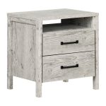 Add a modern touch and ample storage space near any bed with this Modern Washed Pine 2 Drawer Nightstand Cubby Storage Shelf. The 2 large drawers provide storage for all the items you donÂ’t have room for in your dresser. The open cubby space storage shelf can hold everything you need to have close at hand like a book for your nighttime reading.