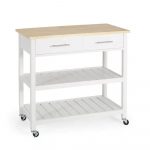 - Modern White Kitchen Island Cart with Wood Top 2 Drawers and 2 Bottom Shelves