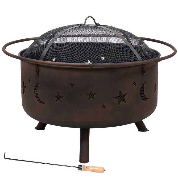A warming addition to any backyard patio or deck, this Moon Stars Steel Fire Pit Bowl with Screen Cooking Grate and Poker features unique and stylish cutouts that create an incredible fire ambience at night.