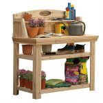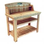 Natural Cedar Wood Potting Bench Garden Work Table with Shelves Multiple shelves for many needs Ready to stain or paint Natural Cedar finish Assembled dimensions: 56-1/2″ x 24-3/8″ x 52″