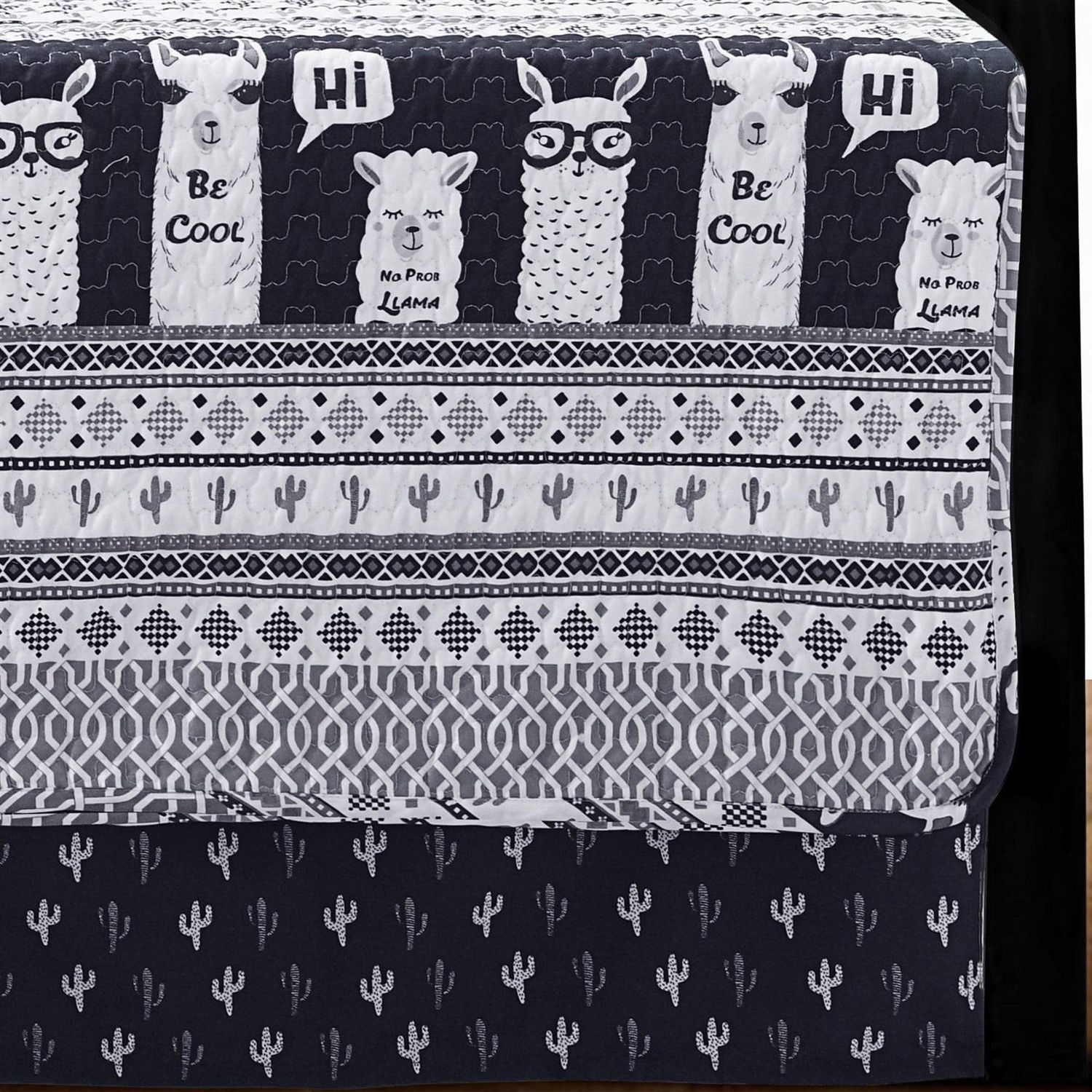 Your family will adore the trendy look of llamas, cacti and geometric shapes printed on microfiber. This Navy Llama Cactus 6 Piece Lightweight Daybed Cover Set includes everything you need to give your daybed a complete and styled look. The bold look of the navy creates a statement in your space. This 6 Piece Daybed Cover Set gets softer and softer each time it is washed. Your kids or guests will love the feel of it when it is time to rest their heads. This Daybed Cover Set includes a soft daybed cover, two matching pillow shams, two pillow cases and a bed skirt to complete the look.
