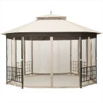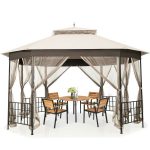 • The 12′ x 10′ top offers a wide range of space to accommodate a group of people for social gathering. Besides, all parts and hardware in the package are clearly marked, so the patio gazebo can be assembled quickly and effortlessly by simply following the instruction. Canopy Shelter Double Top W/Netting Sidewalls