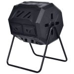 This Outdoor 43-Gallon Compost Bin Tumbler Home Garden Composter is made of durable PP material and steel pipe. It is easy to efficiently convert your kitchen and yard waste into rich soil. Just load it up, close the sliding door and use the convenient built-in hand holds to give it a turn every couple days and see how it produces finished compost in weeks. It is the perfect addition to your backyard, it can help the plants in your garden or your home thrives. If you are looking for a tumbling composter like that, don’t hesitate to buy it.