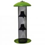 This Outdoor Metal Mesh Tube Hanging Bird Feeder with Green Top and Perch would be a great addition to your home. Make your yard the neighborhood hotspot for your favorite feathered friends when you add this Outdoor Metal Mesh Tube Hanging Bird Feeder with Green Top and Perch to your outdoor space. It has a durable construction and large capacity for use year after year, and the sunflower tube design can accommodate many birds at once so no one has to wait in line. Whether you’re a dedicated bird watcher or just want to enjoy the beautiful colors birds can bring to your yard, this bird feeder is perfect for hanging outside a window or from a tree limb.