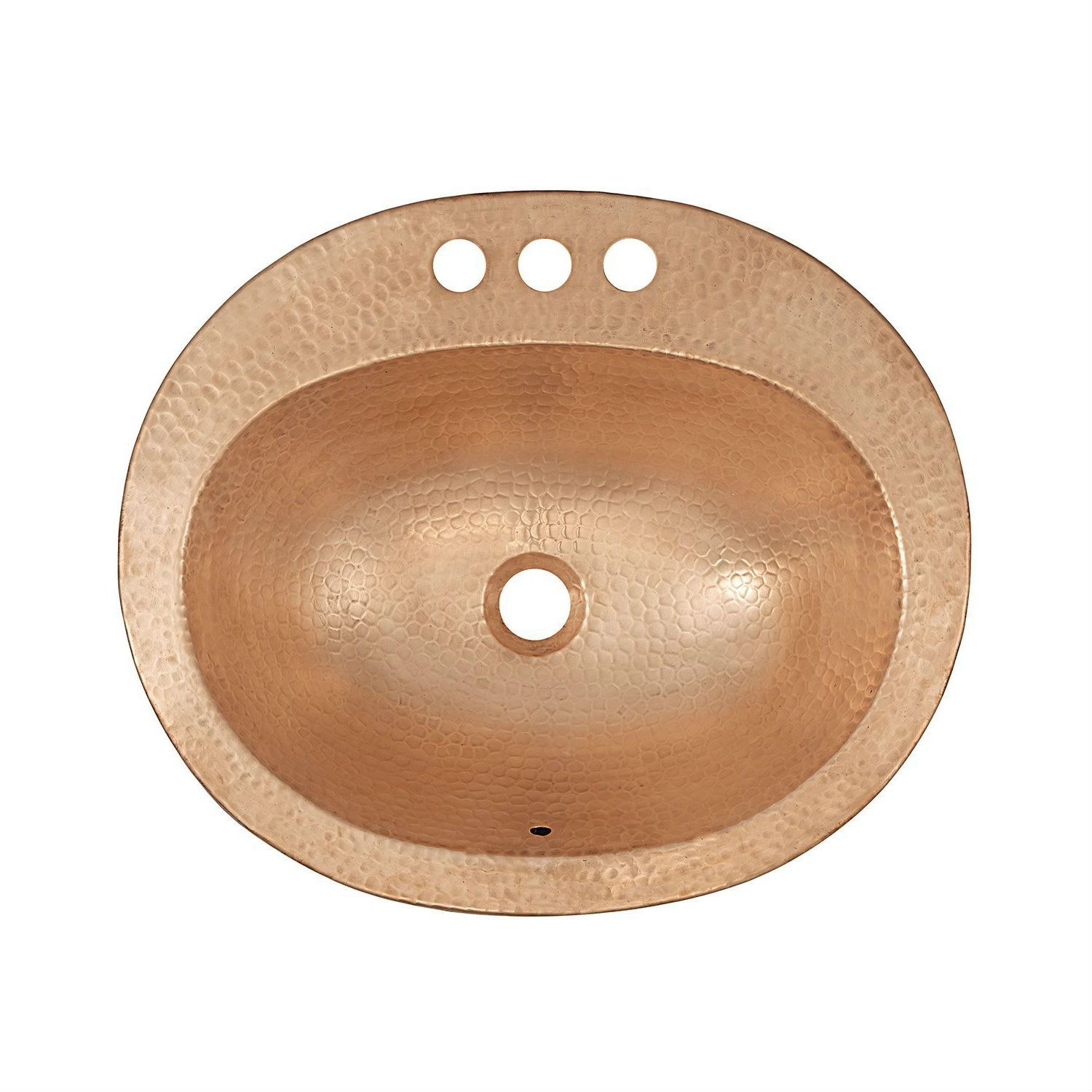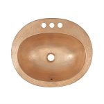 This Oval 20 x 17 inch Drop-in Solid Copper Bathroom Sink defines luxury and functionality. This drop in copper sink has 4 inch faucet holes and overflow, making DIY installation effortless. We artfully handcrafts each sink from pure solid copper. This copper sink are natural and pure, designed to age gracefully and can be easily be brought back to new with a little polish.