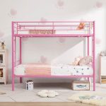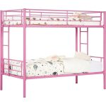 - Pink Metal Twin over Twin Bunk Bed Frame with Two Side Ladders