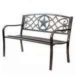 This Powder Coated Steel 4-ft. Outdoor Patio Garden Bench in Bronze Metal Finish will add elegance to your front or backyard. Durable Bronze Powder Coated Finish. Lone Star Design.