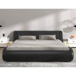 • Queen Modern Black Faux Leather Upholstered Platform Bed Frame with Headboard