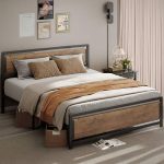 Queen Modern Metal Wood Industrial Platform Bed Frame with Headboard Footboard