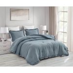 Transform your bedroom in a sophisticated and luxurious manner with this Queen Oversized Blue Stone Washed Ruffled Edge Microfiber Comforter Set. An attractive ruffled edge trim with an elegant yet simple presentation that makes you feel right at home. Fashionably providing everyday comfort. Lightweight, high loft comforter with adequate warmth for year-round use. The comforter is made of 100% microfiber polyester, giving a super soft smooth, and cozy feel. The fabric is stone-washed which creates a natural attractive crinkled fabric effect to enhance the aesthetics of the comforter.