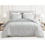Transform your bedroom in a sophisticated and luxurious manner with this Queen Oversized Grey Stone Washed Ruffled Edge Microfiber Comforter Set. An attractive ruffled edge trim with an elegant yet simple presentation that makes you feel right at home. Fashionably providing everyday comfort. Lightweight, high loft comforter with adequate warmth for year-round use. The comforter is made of 100% microfiber polyester, giving a super soft smooth, and cozy feel. The fabric is stone-washed which creates a natural attractive crinkled fabric effect to enhance the aesthetics of the comforter.