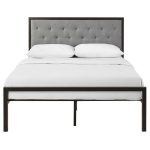 • Full size Metal Platform Bed with Grey Upholstered Button Tufted Fabric Headboard