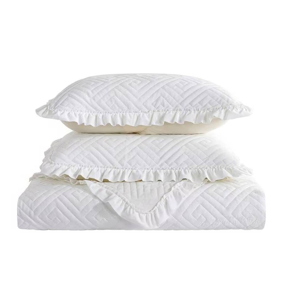 Whether you have a family that snuggles together to watch movies, or if you have a bed to yourself, this Queen size Ivory White Velvet Microfiber Polyester Reversible 3-Piece Quilt Set is perfect. This quilt set provides ample room for everyone. With the unique stitching pattern, this Queen size Ivory White Velvet Microfiber Polyester Reversible 3-Piece Quilt Set has been crafted with long-staple fibers to withstand time, as well as wear and tear from those movie night spills and recurrent washings. The colors are vibrant and long-lasting to continue to provide that down-home feel of comfort and familiarity. This Queen size Ivory White Velvet Microfiber Polyester Reversible 3-Piece Quilt Set is unique in its material and weaving which allows the warmth, coziness of a quilt without that scratchy, heavy, sometimes irritating feeling.