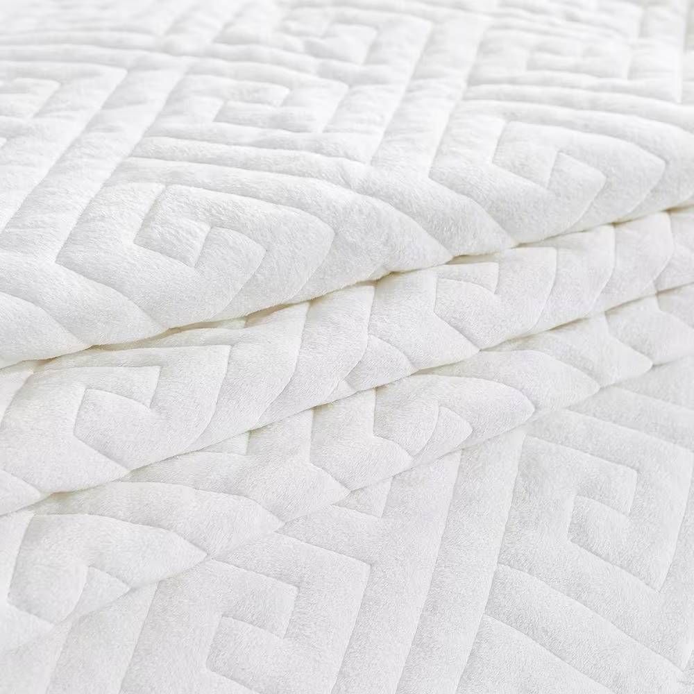 Queen size Ivory White Velvet Microfiber Polyester Reversible 3-Piece Quilt Set