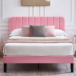 - Queen size Pink Upholstered Platform Bed Frame with Headboard
