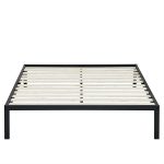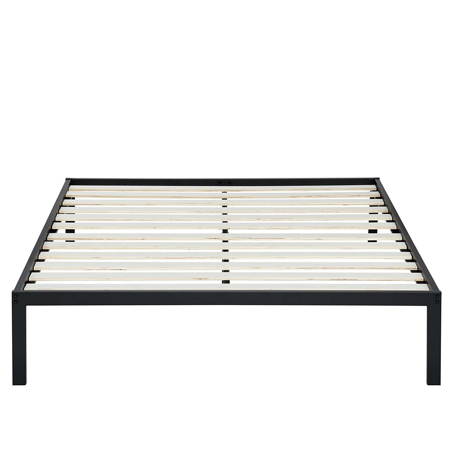 Queen size Steel Metal Platform Bed Frame with Wood Slats Mattress is embedded in steel frame to avoid sliding or wobbling No box spring needed with the solid steel frame 12.5 inches of clearance. No additional tools required