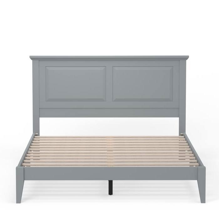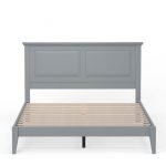 This Queen Size Retro Solid Oak Wooden Platform Bed in Grey with prominent headboard is a must have for any bedroom! Inset panels and retro molding that adds refined elegance to any bedroom or guest room. It is crafted from solid oak, a naturally hard and durable wood. Platform bed sits on straight and slightly tapered legs that raise this bed almost 8 inches off the floor. This system of slats eliminates the need for a box spring and works best with any standard mattress (recommended 10 inches of thickness). Assembly is required.