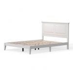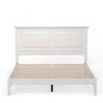 This Queen Size Retro Solid Oak Wooden Platform Bed in White with prominent headboard is a must have for any bedroom! Inset panels and retro molding that adds refined elegance to any bedroom or guest room. It is crafted from solid oak, a naturally hard and durable wood. Platform bed sits on straight and slightly tapered legs that raise this bed almost 8 inches off the floor. This system of slats eliminates the need for a box spring and works best with any standard mattress (recommended 10 inches of thickness). Assembly is required.